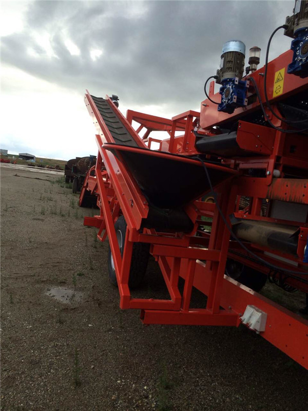 土豆去土分级装车机一般在农场土豆地里作业,将杂土、小土豆、大土豆三级分选,分别上车。去土、分级、装车一次解决,节省大量人工。